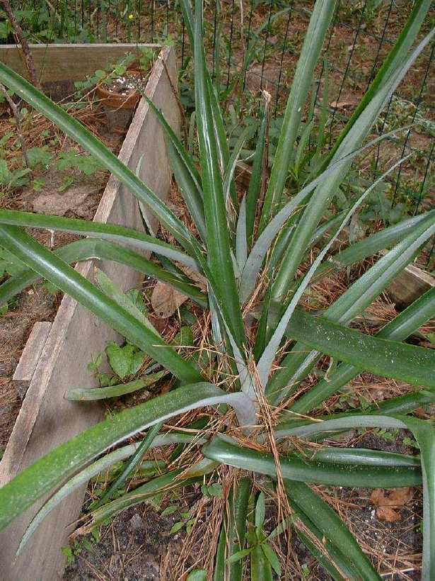 I just set them in loose dirt. I don't bury them. I just press them in. I cut them off and do it same day. You have to have more than one to fertilze and get a pineapple. I know Summer's husband had one that got a pineapple.