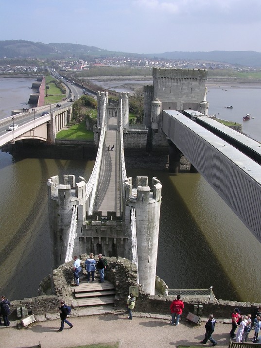 New bridge, old bridge and to the right the train bridge