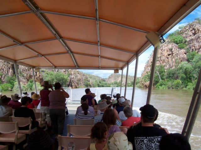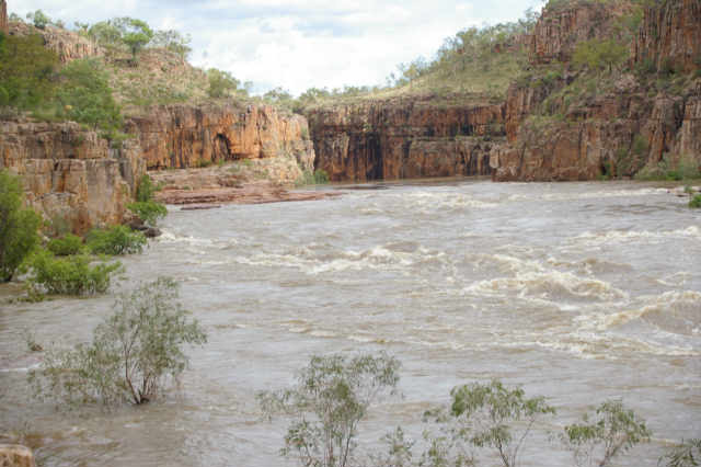 In Katherine, our first stop, we went for a trip up Katherine Gorge, Nitmiluk in the new talk. The gorge was in flood, and we were unable to go beyond the first rapids. The water was about 15 ft above normal.