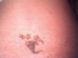 Okay, this is one that is right above my pants line on the center of my back. It's not a very good pic, seeing as how I took it myself. There is no color in the top of it because I thought that it would be unique.