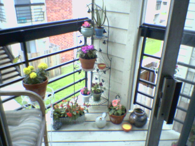Well, I am feeling a little spring fever in Texas! I thought I would share a pic of my flowers on my balcony. Its a very small balcony, but it definately helps to bring the sunshine inside!