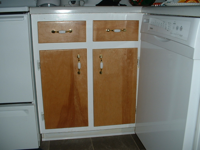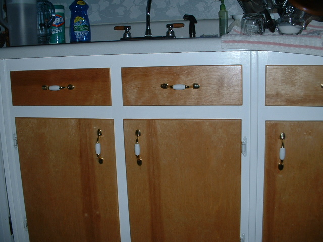 Mrs. WI and I purchased our house almost 6 years ago. It was built in 1968 and was well maintained, but the kitchen (though functional and livable) looked dated. It appeared as though a few years prior, the previous owners attempted to give it a new look by painting the cabinets white. Having just sold a house that we completely renovated, we were less than enthusastic to start with this one. But Mrs. WI couldn't stand it, so one week while she was away...I stripped all the woodwork down and poly'd it all. It came out really nice, but now she is squalking about how maybe we should've just painted it a different color instead.